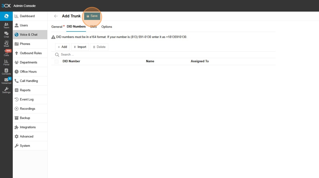 10. Click the "Main Trunk Number" field. And add one of your numbers.